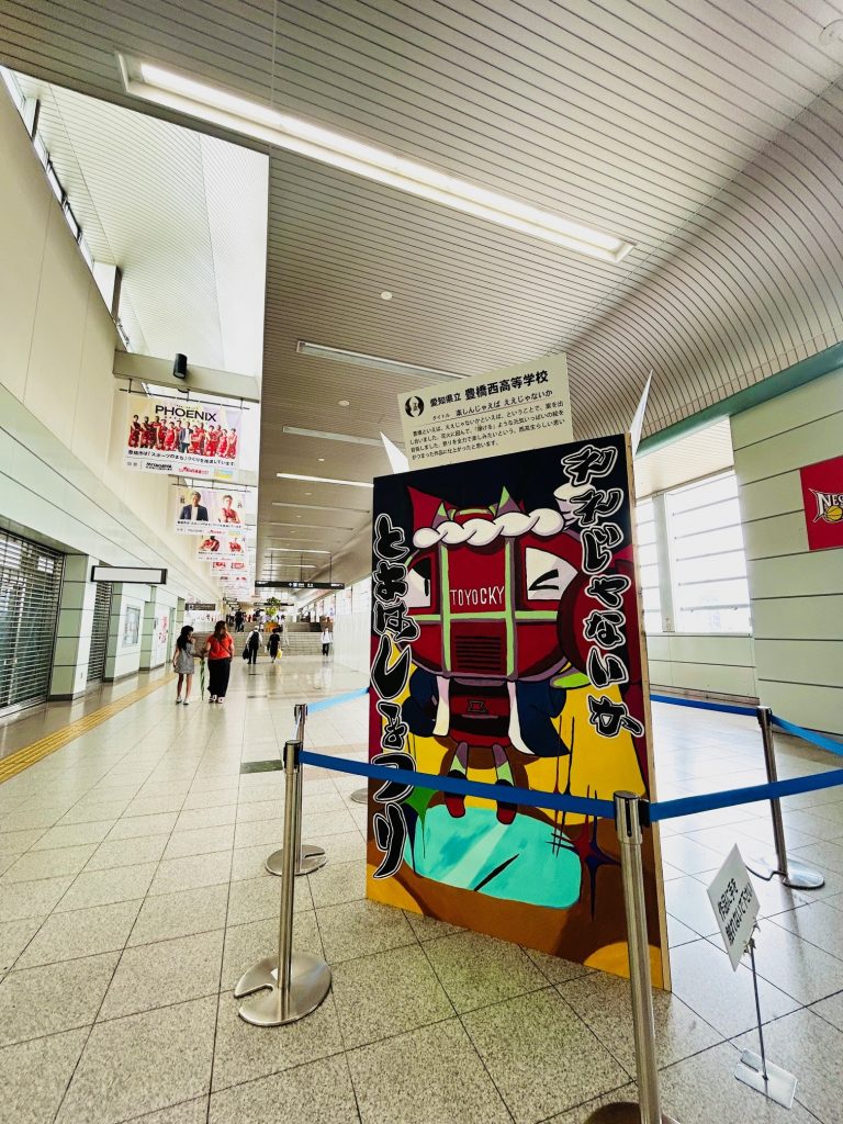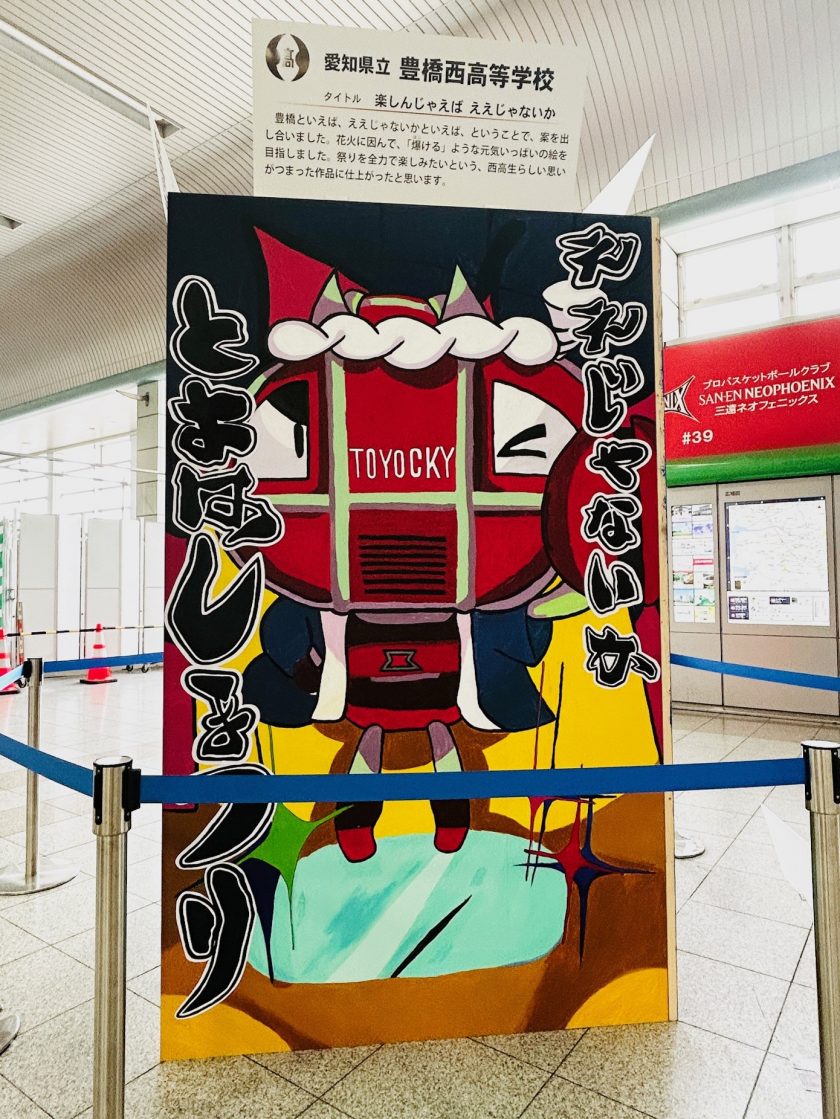 10/18(土)、19(日)に豊橋まつりが開催されます。それに先立ち豊橋駅コンコースには市内の高校美術部生徒による大パネルが展示されており、西高美術部も出展しています。