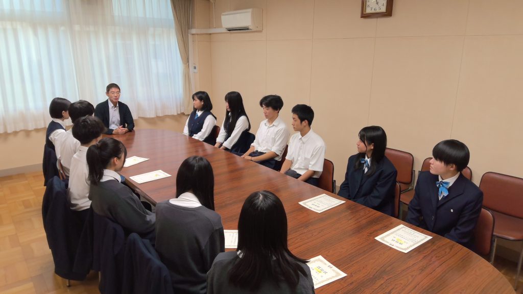 1年生/2年生/3年生/お知らせ/学校生活 認証式が行われました! 2025年10月16日 後期生徒会役員の認証式が行われました。前期から引き続き生徒会役員として選ばれた生徒、後期から新しく生徒会に選ばれた生徒それぞれが持つ良さを活かして、より充実した学校生活を作っていって欲しいです。 前期生徒会役員の皆さんお疲れさまでした!そして後期生徒会役員の皆さん期待しています!