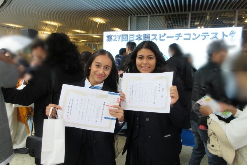 11/9(日)emCAMPUSにて行われた第27回日本語スピーチコンテストに外国にルーツのある1・2年生徒が出場し、見事優勝と3位入賞を果たしました!