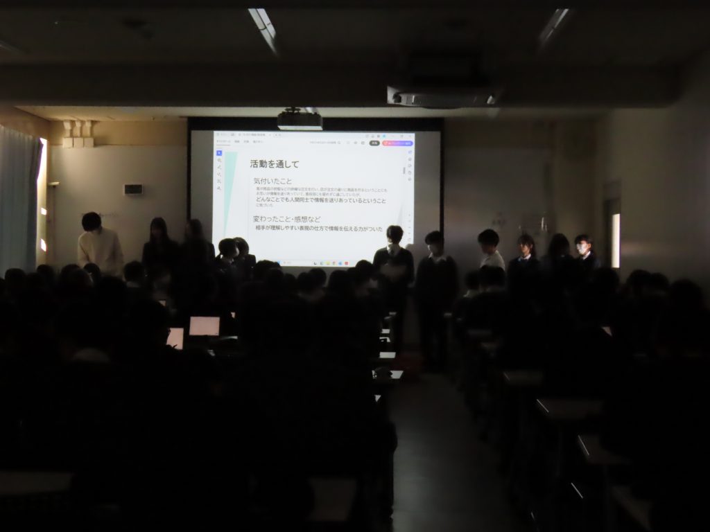 1年生/お知らせ/学校生活/産社 産社「プレゼミ探究」学年発表会を行いました! 2025年12月16日 1年産社では10月からプレゼミ探究活動に取り組んでおり、12/15には学年発表会を行いました。 実際に事業所を訪れ感じたこと、実証実験を繰り返す中での気づき、これまでは漠然としていた興味分野について、その面白みに触れたこと、活動を通して自分の進路・キャリア意識にあった変化などについて発表しました。 大人数の前での発表に緊張した様子も見られましたが、各講座の報告をもとに、お互いにとって「学び合い」の機会になりました。