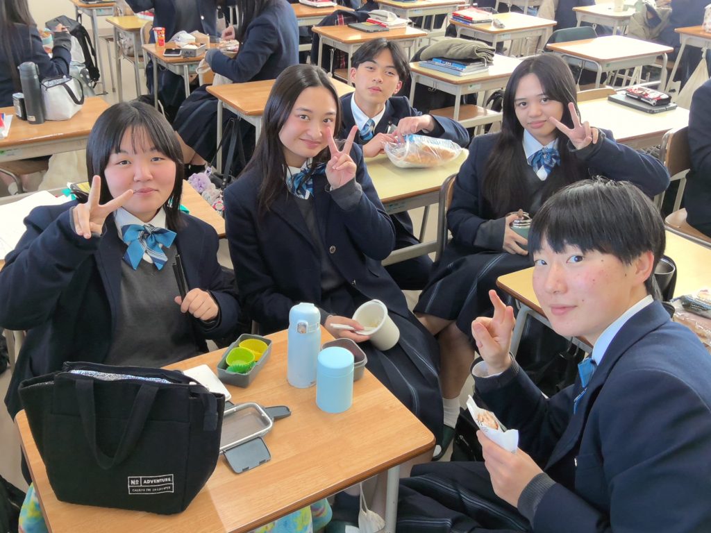 3年生/お知らせ/学校生活 3年生、最後のランチタイム! 2026年1月19日 3年生は明日から学年末考査が始まります。考査を直前にした1/19(月)は3年生にとって高校生活最後のお昼休みになりました。 昼休みの教室を覗いてみると… 普段と変わらず穏やかに昼食をとっているグループもあれば、最後の昼食だから、とスペシャルな時間を過ごしているグループも。中にはいつもとは違うメニューが詰まったお弁当もありました。 3年生からは、家族の皆さんへの「ありがとう」の言葉もたくさん聞こえてきました。 残り少ない高校生活、感謝の気持ちとともにたくさんの思い出を作ってくださいね。