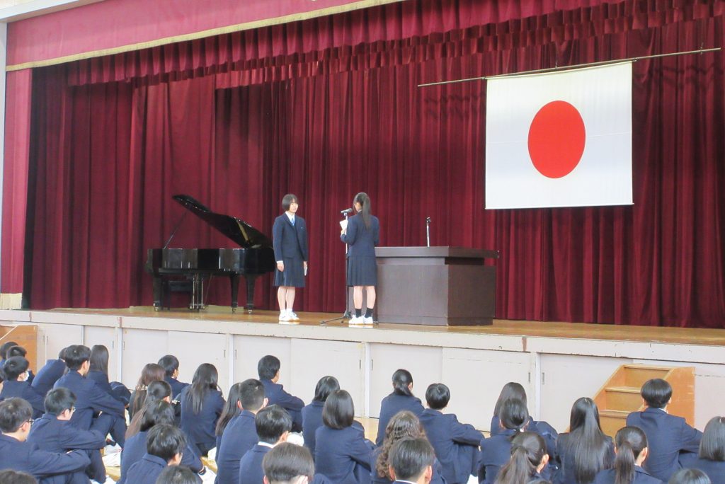 1年生/2年生/3年生/お知らせ/学校行事 着任式・始業式・対面式が行われました 2026年4月7日 4/7(火)、着任式・始業式・対面式が行われました。着任式では、新たに本校へ赴任された先生方の紹介があり、始業式では、校長先生から新年度に向けたお話がありました。生徒一人ひとりが気持ちを新たに、これからの学校生活への決意を固める機会となりました。 対面式では在校生が新入生を温かく迎え入れました。新入生にとっては、高校生活の第一歩を実感する大切な時間となったことと思います。 新しい仲間、新しい環境の中で、それぞれが目標に向かって充実した一年を過ごしていくことを期待しています。