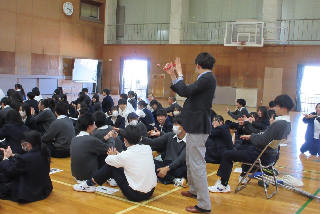 4/16には、NPO法人アスクネットの山本さんから、これから本格的に進めていく探究活動に向けて、「探究活動の楽しみ方」というテーマでお話していただきました。講師の先生のお話に加え、ペン回しなどのワークも取り入れられ、生徒たちは楽しみながら主体的に参加していました。
