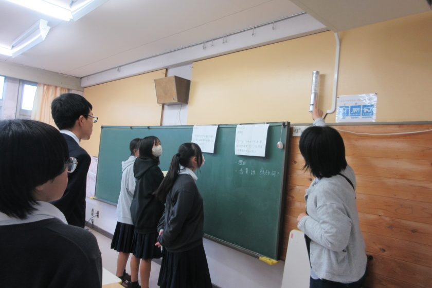 3年生の授業「SDGs」は、公民科教員と英語科教員が合同で授業を担当しています。普段の授業では英語を通してSDGsについて理解し、更に深めるために公民科教員による授業、その後プロジェクトなど